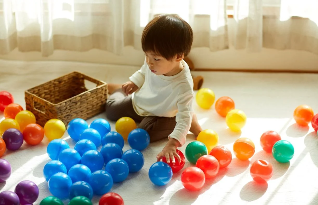 Toy cars, balls, or marbles